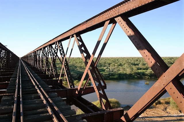 We stopped in at Walkers Creek for a bite to eat and a quick beer in the pub before continuing on along the track. Anna has always been fascinated by Anna Creek Station (biggest station in the world) and was keen to check out the old Anna Creek railway siding. The Oodnadatta track and the old railway line separate just before Anna Creek and run either side of a small ridge, eagle eyed Anna spotted an unmarked track that took us down to the Anna Creek siding. These ruins were in pretty good condition and free from the graffiti unlike the other sidings that are more accessible. From here we continued onto Algebuckina Bridge which is the largest bridge in SA and found a nice camp for the night.